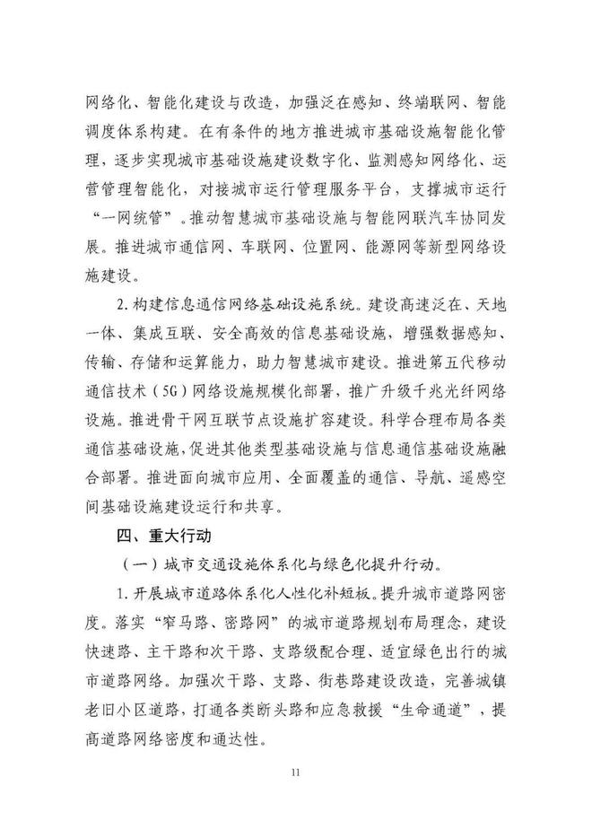 《規劃》圍繞構建系統完備、高效實用、智能綠色、安全可靠的現代化基礎設施體系,提出4方面重點任務。一是推進城市基礎設施體系化建設,增強城市安全韌性能力。二是推動城市基礎設施共建共享,促進形成區域與城鄉協調發展新格局。三是完善城市生態基礎設施體系,推動城市綠色低碳發展。四是加快新型城市基礎設施建設,推進城市智慧化轉型發展。