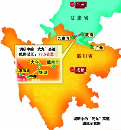 武九高速公路起點(diǎn)位于武都區(qū)桔柑鄉(xiāng)賈家坪村,與武罐高速公路以樞紐立交相接,終點(diǎn)位于文縣青龍橋(甘川界),順接綿陽至九寨溝高速公路,路線全長(zhǎng)100.6公里,估算投資179.61億元。