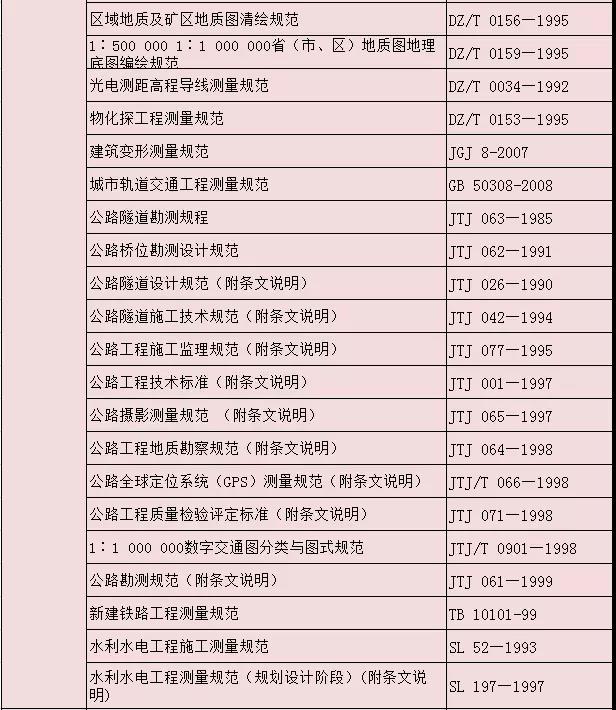 測(cè)繪專業(yè)國(guó)家及行業(yè)標(biāo)準(zhǔn)匯總