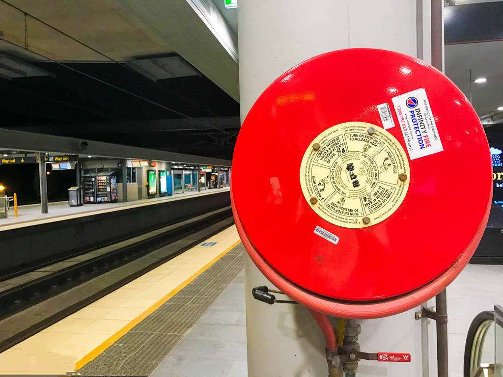 站臺要做消火栓,相當于室外消火栓,并且要放置滅火器。現在有些站的站臺會用推車式的細水霧裝置代替滅火器。