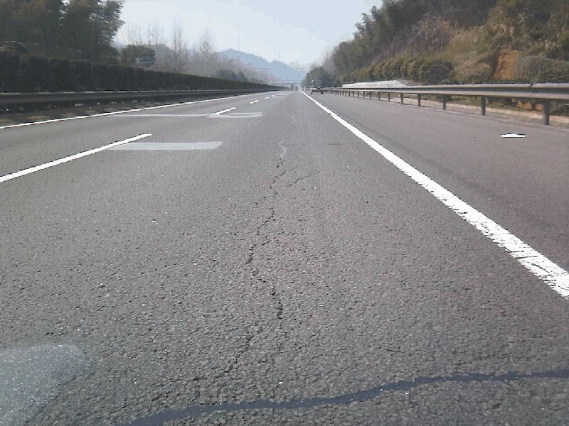 一種主要發生在緊急停車帶或路肩部位,其形狀是沿路肩邊緣向內逐步擴大,呈月牙形,這種裂縫容易使路基發生滑移,危險性很大;