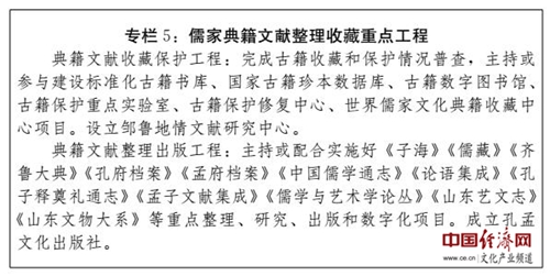 (三)實施典籍文獻標準化和信息化工程。梳理萃取儒家優秀傳統文化經典內容,通過大數據等信息技術手段加以儲存、保護、開發、轉化、應用。加強與主流機構和平臺的交流合作,利用5年左右時間建成面向海內外的標準化、數字化儒家傳統文化經典資料庫和網絡推廣平臺。精心選定古籍版本,強化古籍版本學、目錄學、校勘學等專業人才支撐,加強對生僻字、異體字、繁簡對照等問題研究,提高古籍文字電子識別技術。豐富內容、統一標準、提升功能,讓常用的古籍精品和久已絕版而又傳世孤罕的古籍善本化身百千,相對真實、永久地保存原貌,真正發揮繼絕存真的作用。