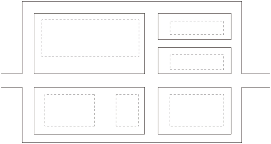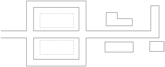 道路主要平行于主要建筑、構(gòu)筑物,圍繞各庫(kù)房進(jìn)行布置,這種道路布置形式受地形條件限制,一般不宜在山區(qū)丘陵地區(qū)采用,且道路的總長(zhǎng)度及占地較多,對(duì)于交通繁忙、車流和人流組織需要分離的采用,如圖所示。