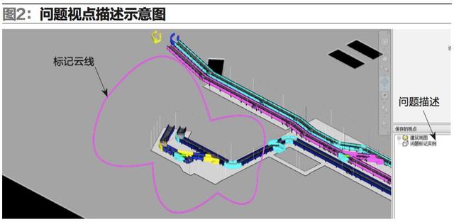 4.參照后的項(xiàng)目文件中具有尺寸量取、問(wèn)題視點(diǎn)標(biāo)記等功能,方便問(wèn)題內(nèi)容的傳遞,且在復(fù)雜系統(tǒng)中能快速切換到標(biāo)心的視圖中(如圖2)。