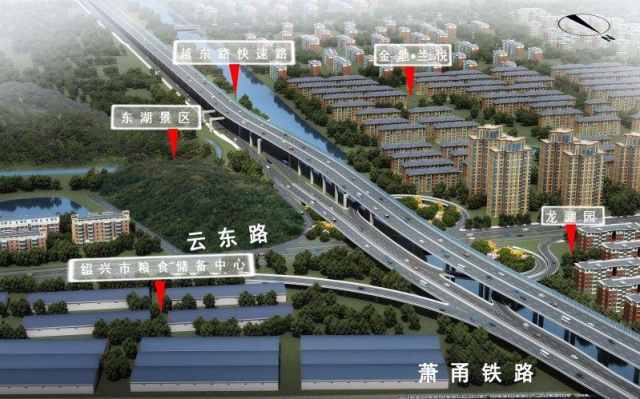 總體方案 :快速路主線西起湖安路,以地面形式過鏡水路,再以地道形式下穿杭甬高鐵紹興北站區(qū)段,接著以地面道路形式向東經綠云路、解放大道之后起坡,保留綠云路和解放大道立交。主線過解放大道之后,起坡以高架形式跨越湯公路、中興大道、越東路等,越東至孫曹公路交叉口段還在研究中。