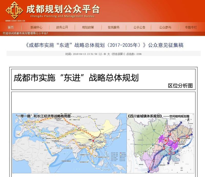 文件還顯示,2017年5月以來,成都市有關部門同步組織開展了《成都市實施 “ 東進 ” 總體戰(zhàn)略研究》和《成都市實施 “ 東進 ” 戰(zhàn)略總體規(guī)劃》兩項工作,近一年的時間里,結合多次會議意見及相關區(qū)(市)縣、市級部門書面反饋意見,經過多輪修改完善,才形成今天的最新規(guī)劃藍圖。