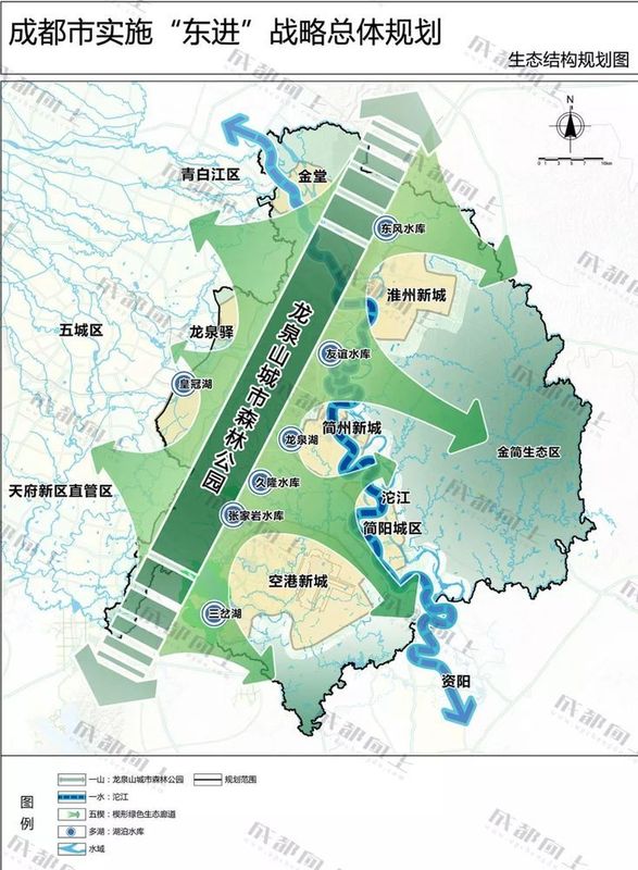 今年,在龍泉山城市森林公園規(guī)劃后,東進區(qū)域范圍有所調整,涵蓋金堂縣、簡陽市全域、龍泉驛區(qū)車城大道以東區(qū)域以及青白江區(qū)、天府新區(qū)直管區(qū)位于龍泉山森林公園范圍內的區(qū)域(共涉及7個鄉(xiāng)鎮(zhèn)),總面積為3976平方公里。