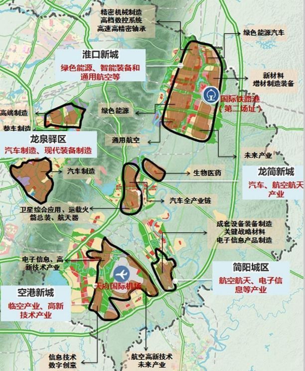 因此,東進區(qū)域將發(fā)揮空港帶動作用和區(qū)域優(yōu)勢,集聚高端和新興產業(yè)。發(fā)揮天府國際機場的強大帶動能力,集聚高端臨空產業(yè)。