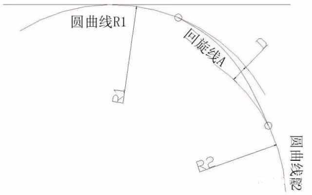 (1)卵型上的回旋參數(shù)A不應小于該級公路關于回旋線最小參數(shù)的規(guī)定,同時宜在下列界限內(nèi):R2/2≤ A≤ R2(R2為小圓半徑);