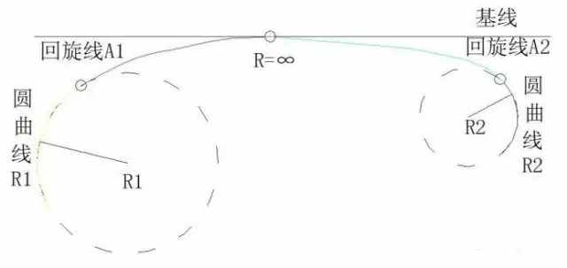 直線+緩和曲線+圓曲線+緩和曲線+直線,這種線型和地鐵平曲線里的大部分線型是一樣的。