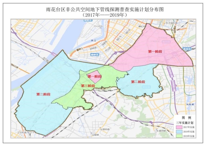 雨花臺(tái)區(qū)公共區(qū)域地下管線普查總長為3705公里。非公共空間地下管線總長度預(yù)估約為 4300 公里,于 2017 年 9 月啟動(dòng),分三年逐步實(shí)施,2019年12月底完成任務(wù)。