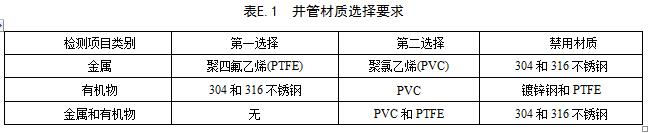 井管材質因檢測項目的不同而有所差異,各類檢測項目的材質選擇見表E.1。