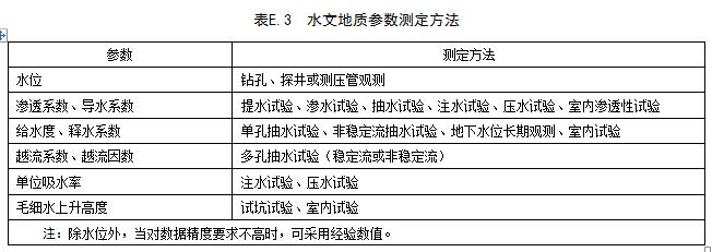 水文地質參數測定的一般方法見表E.3。