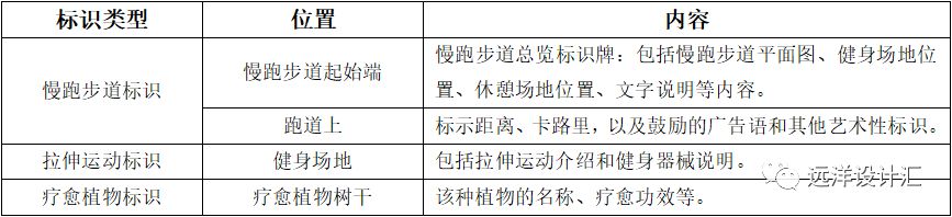 表3-3 居住區(qū)慢跑步道標識內(nèi)容