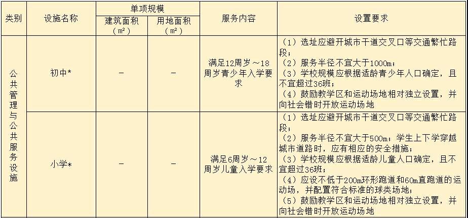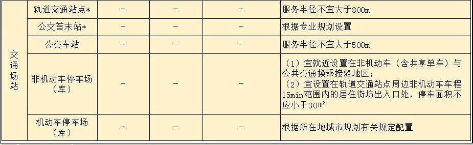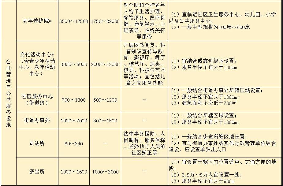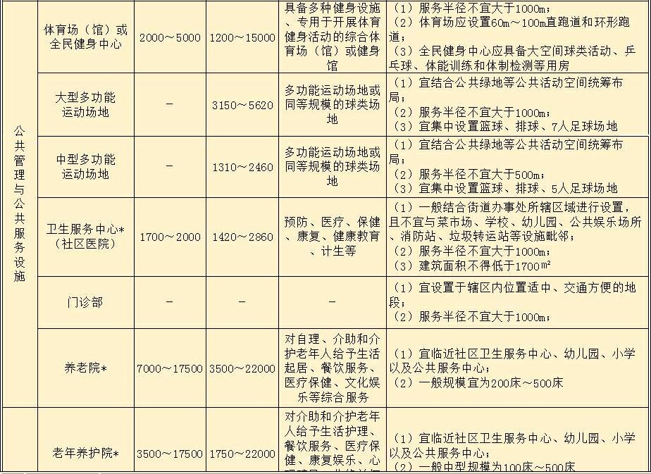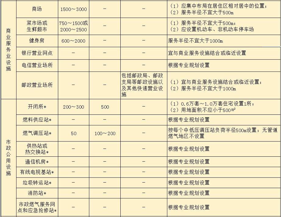 注:1 加*的配套設施,其建筑面積與用地面積規(guī)模應滿足國家相關(guān)規(guī)劃和建設標準的有關(guān)規(guī)定;