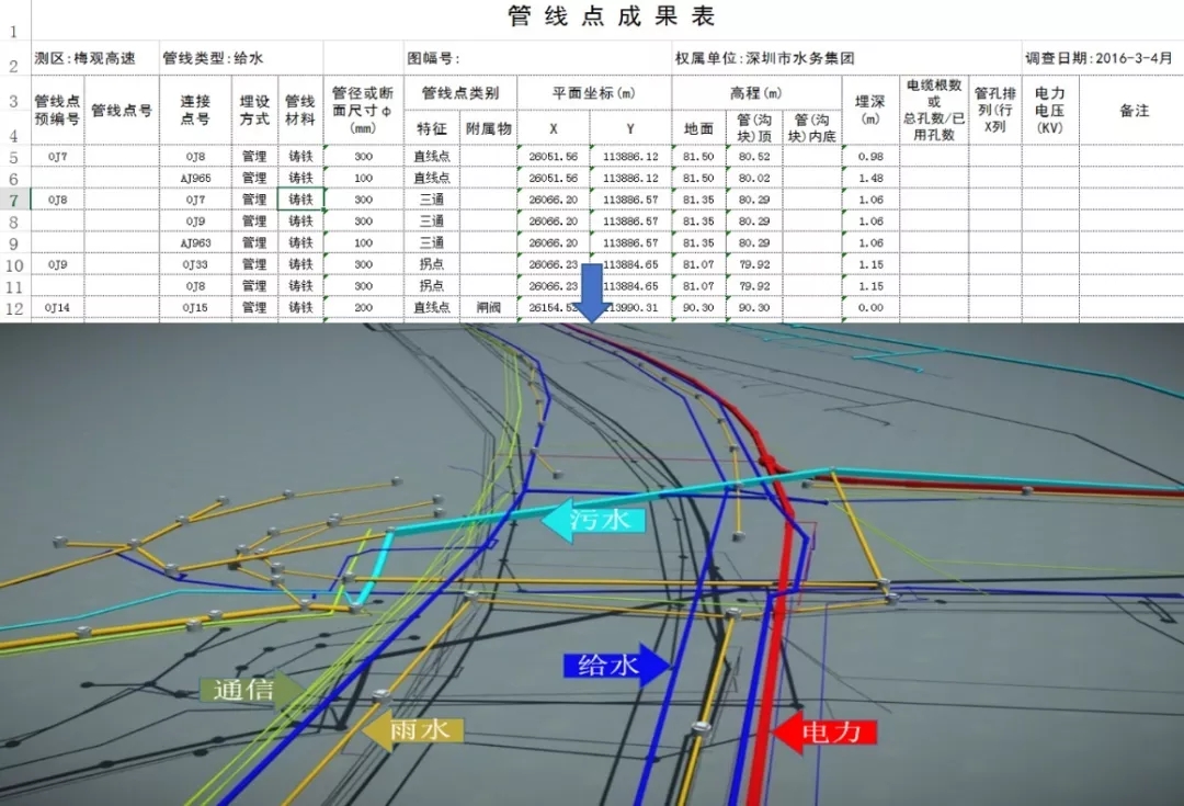 重建管網(wǎng)現(xiàn)狀模型。項(xiàng)目區(qū)域地下管網(wǎng)錯(cuò)綜復(fù)雜,為探明復(fù)雜的管網(wǎng)現(xiàn)狀,避免設(shè)計(jì)延誤。項(xiàng)目組研發(fā)管網(wǎng)建模工具,重構(gòu)了完整的地下管網(wǎng)BIM模型,準(zhǔn)確定位,便于管廊設(shè)計(jì)與遷移。