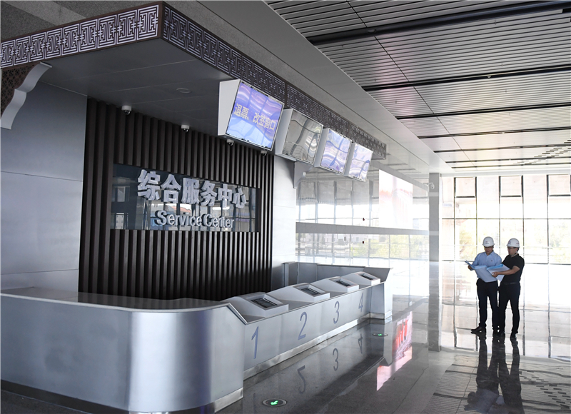 9月18日,工作人員對京雄城際北京大興站內(nèi)的綜合服務(wù)中心進行驗收檢查。