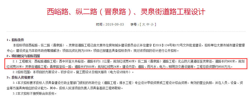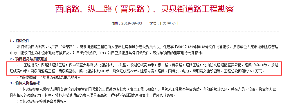 太原又將修建三條道路 設(shè)計(jì)勘察開(kāi)始招標(biāo)