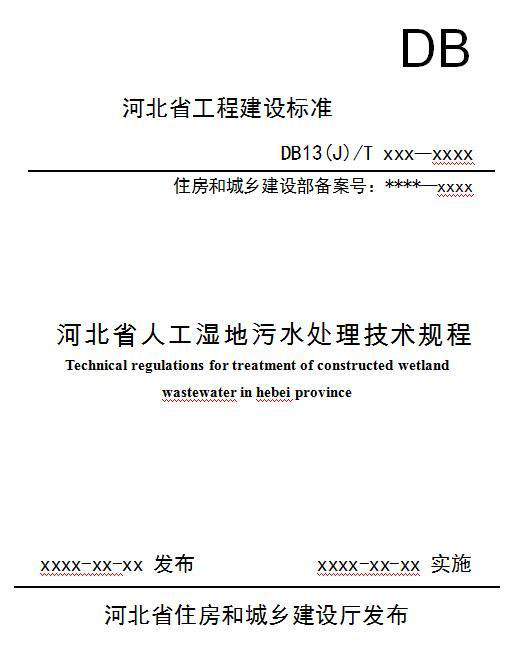 河北省工程建設標準《河北省人工濕地污水處理技術(shù)規(guī)程》(征求意見稿)