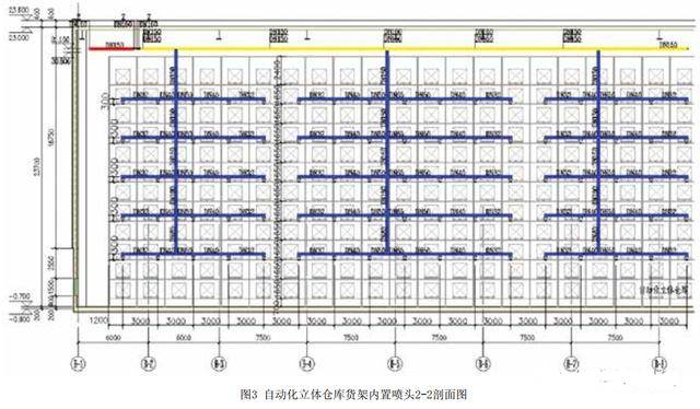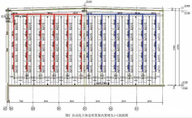1、自動(dòng)化立體倉庫由于最大儲(chǔ)物高度超過13.5m,頂板下噴頭無法滿足滅火要求,需要頂板下噴頭和貨架內(nèi)噴頭結(jié)合布置,達(dá)到滅火作用,頂板下噴頭采用的噴頭特性系數(shù)需要通過計(jì)算確定,需滿足噴頭噴水強(qiáng)度要求。