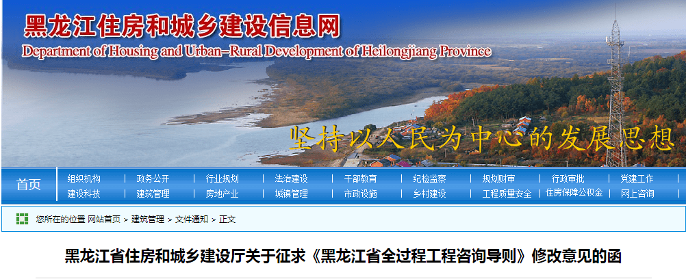 黑龍江省住房和城鄉(xiāng)建設(shè)廳關(guān)于征求《黑龍江省全過(guò)程工程咨詢導(dǎo)則》修改意見(jiàn)的函