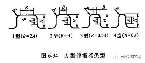 方形補償器:由四個90°彎頭組成,優點制作方便,補償能力大、軸向推力較?。蝗秉c是單向外伸臂較長,占地大,常用四種形式: