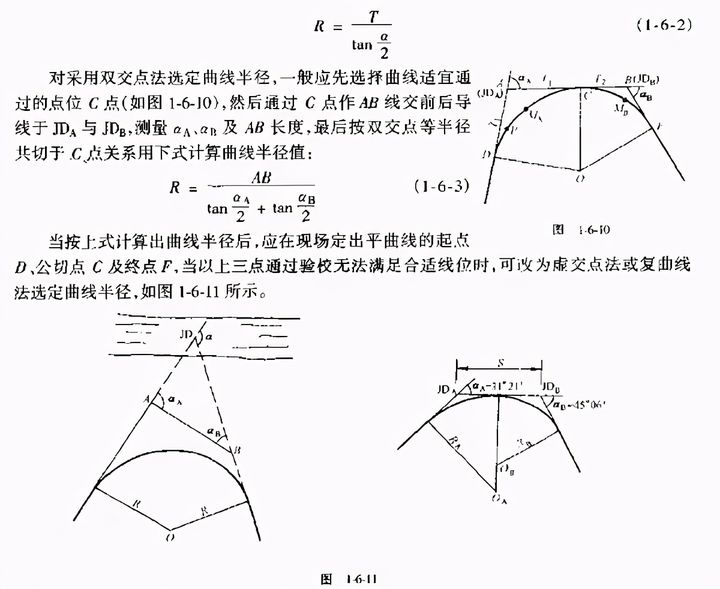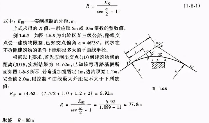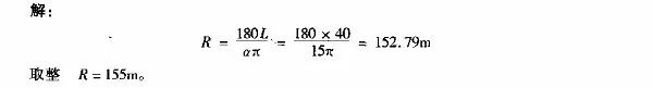 當已知交點偏角.其他條件不受限制時,如果平曲線半徑選得過小,則曲線長度太短顯然對行車不利。此時應用平曲線的最短允許長度來控制半徑,其計算公式為