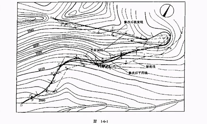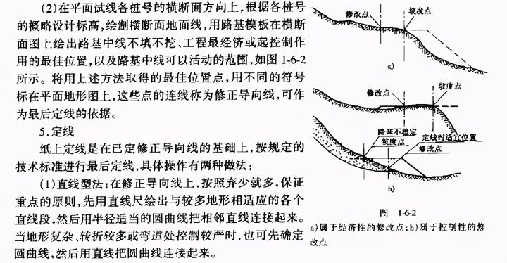 紙上定線是一個反復試定線路的過程,平面試線的修改次數(shù)越多,最后所定路線的設(shè)計質(zhì)量越高,直到認為再修改己得不到顯著效果時,紙上定線工作才算完成。
