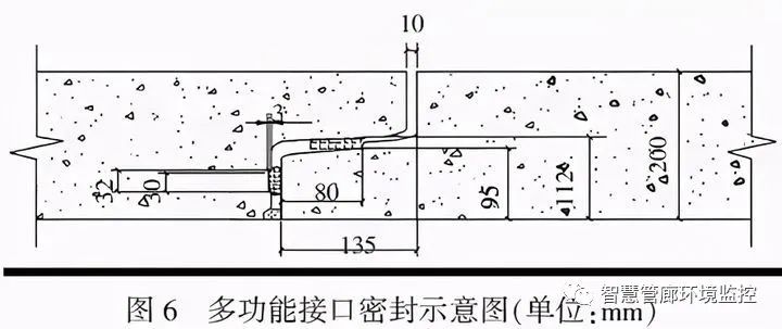 ②地下綜合管廊的設(shè)計(jì)使用年限為100 年,密封膠圈的耐老化性能成為關(guān)鍵,使用數(shù)十年后,橡膠的應(yīng)力松弛、物理性能變化、彈性對(duì)混凝土面的擠壓應(yīng)力是否還能滿足接口抗?jié)B要求等成為疑問(wèn),而多功能接口不但具有現(xiàn)時(shí)接口質(zhì)量可檢性,而且還具備接口質(zhì)量的可補(bǔ)性。當(dāng)接口中使用的膠圈性能不能滿足接口抗?jié)B要求時(shí),可擰開(kāi)上下接口檢驗(yàn)進(jìn)水通道的螺帽,吹凈其中水分和雜物,接上灌漿設(shè)施,向兩個(gè)膠圈之間的空腔內(nèi)灌注防水密封膠液,形成二次柔性密封接口。