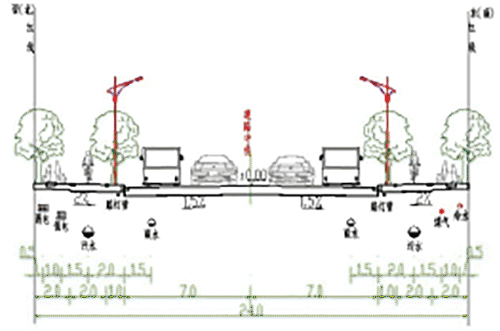 (4)室外給水管道按規范要求沿現狀道路或沿規劃道路布置供水干管,一般敷設在人行道或非機動車道上(詳見圖1),這樣安裝檢修方便。人行道上沒有位置時,可考慮將給水管道布置在車行道下。干管定線時,干管延伸方向應和城市管網接管處到大用戶、小區開發方向、高位水池等的水流方向一致。順著水流方向,以較短的距離布置一條或數條干管。支管從環狀管網接出,并應使跨馬路的給水支管數量盡量減少。