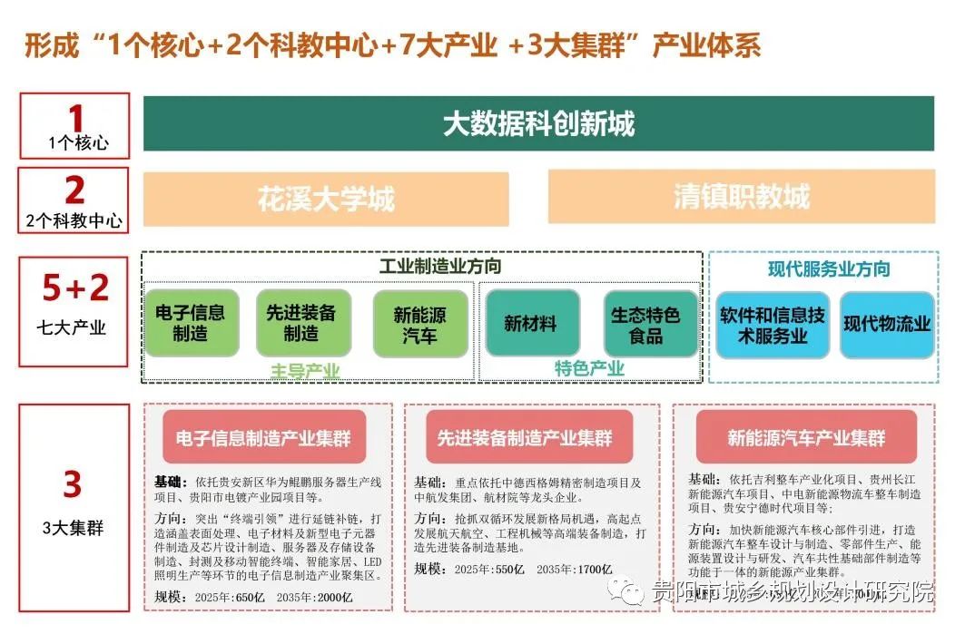 貴陽市形成“一心三核多組團,山水林城相融合”的城市空間新格局,貴安清鎮作為三核之一,以創新為引領的跨越發展新高地,重點發展數據中心、軟件服務、電子信息、智能裝備等領域。