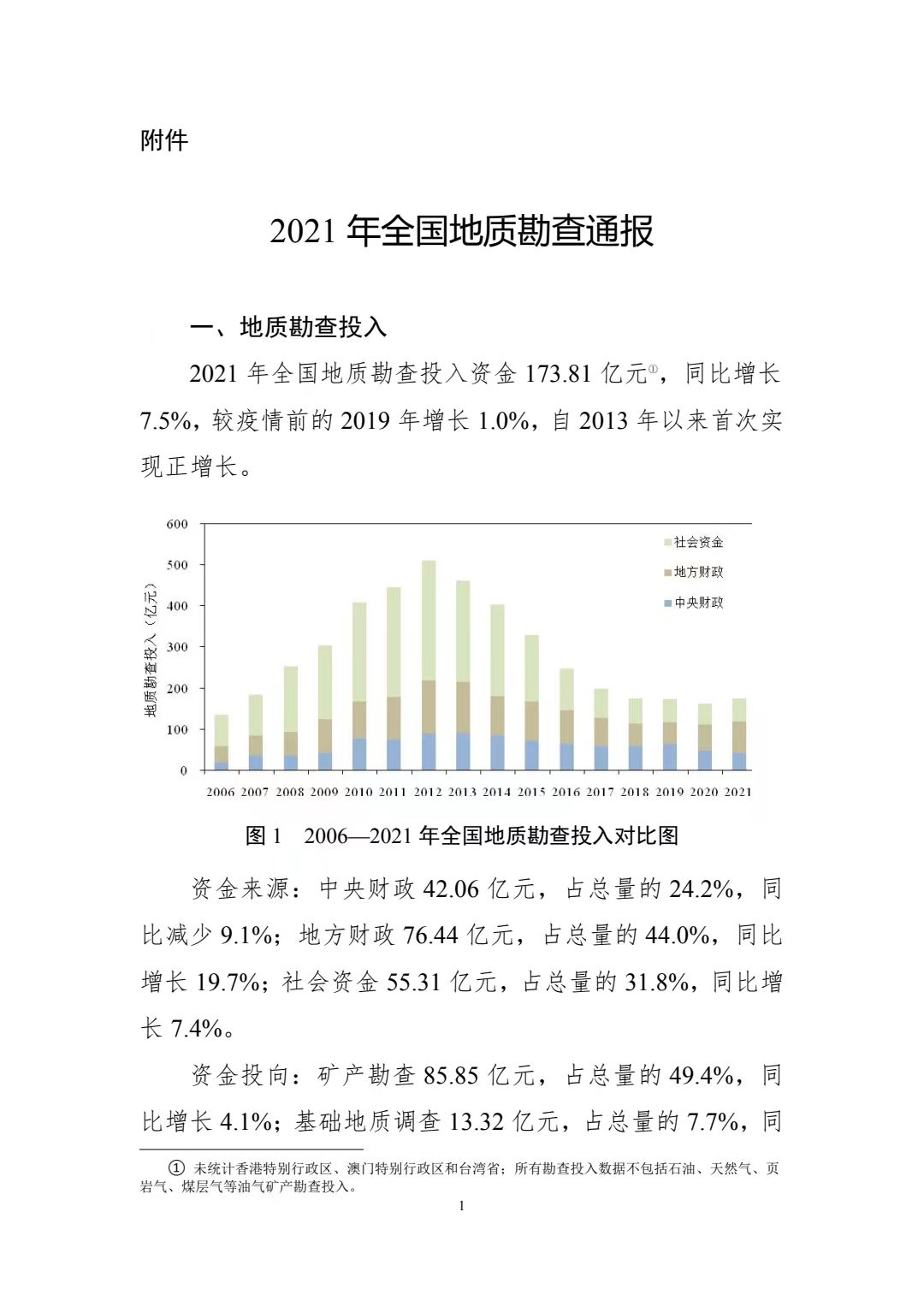 重磅!《2021年全國地質(zhì)勘查通報(bào)?》發(fā)布