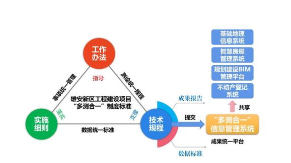雄安新區(qū)工程建設項目“多測合一”是落實雄安新區(qū)黨工委、管委會加快推進工程建設項目審批制度改革工作的具體實踐,也是同步構建數字城市的重要基礎保障。2021年4月,雄安新區(qū)管委會率先在省內印發(fā)出臺了“多測合一”工作辦法、實施細則和技術規(guī)程,同步啟動了“多測合一”信息管理系統(tǒng)建設,主動適應新區(qū)進入大規(guī)模開發(fā)建設與承接北京非首都功能疏解同步推進的發(fā)展要求,打造了“多測合一”改革的“雄安模式”。