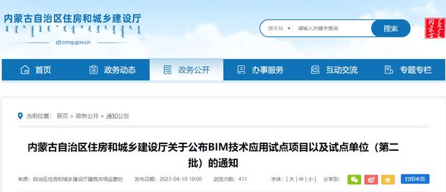內蒙古BIM技術應用試點項目和試點單位公布!