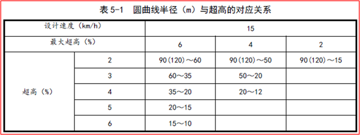 《規范》表5-1 圓曲線半徑(m)與超高的對應關系