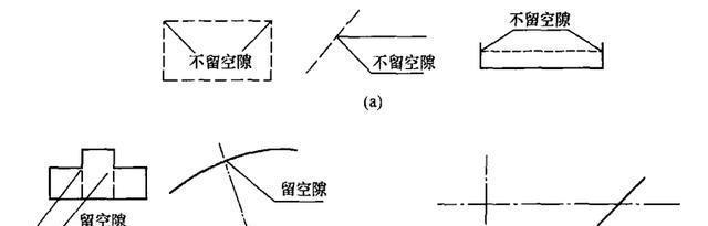 ②當(dāng)實(shí)線的延長(zhǎng)線為虛線時(shí),應(yīng)留空隙,見(jiàn)圖2-4(b).