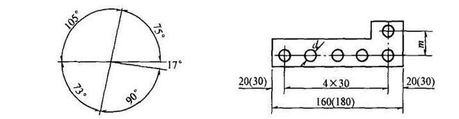 (10)角度尺寸線應(yīng)以圓弧表示.角的兩邊為尺寸界線。角度數(shù)值宜寫(xiě)在尺寸線上方中部.當(dāng)角度太小時(shí),可將尺寸線標(biāo)注在角的兩條邊的外側(cè)。角度數(shù)字宜按圖2-12標(biāo)注。