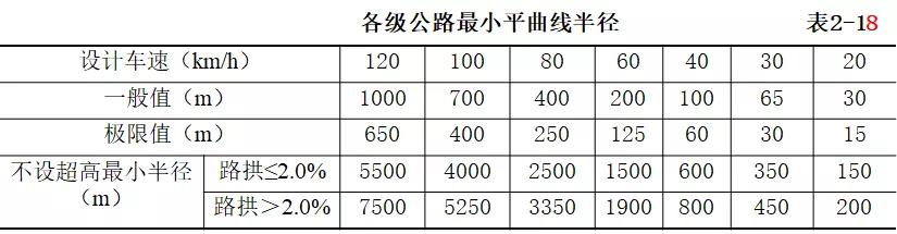 極限最小半徑:能保證按設計速度行駛的車輛安全行駛的最小半徑