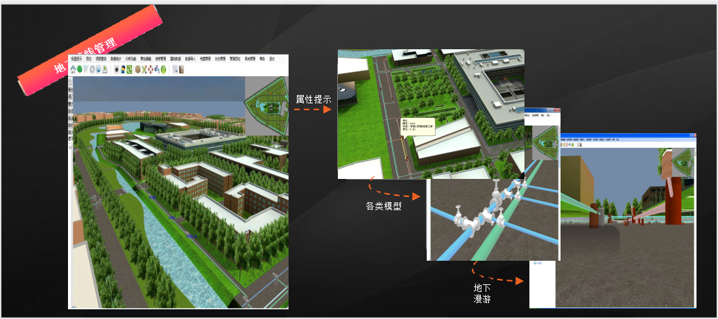 2.實時掌握各種管線的分布以及管理維護進度,避免出現(xiàn)盲目開挖造成管線損失。改善管線維護效率,提高市行政中心南北院規(guī)劃管理水平,為市行政中心南北院突發(fā)事件提供輔助決策。