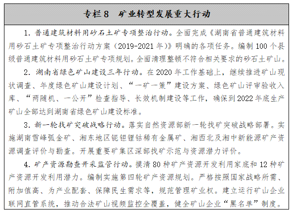 支持省屬國有礦企整合我省優(yōu)勢礦產資源,引導省內頭部礦企通過強強聯(lián)合、兼并重組、境外并購和投資合作等方式,收購或控股一批勘查、開采、選冶加工企業(yè),促進規(guī)模化、集約化經營。針對不同的優(yōu)勢礦種,實施不同的產業(yè)發(fā)展政策,培育一批我省優(yōu)勢礦種的特色礦企。建立優(yōu)勢礦產交易平臺,提高全省礦業(yè)企業(yè)行業(yè)地位,實現從產品優(yōu)勢到市場優(yōu)勢的轉型,提高湖南優(yōu)勢礦產話語權。